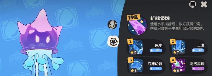 毒袍子是必选技能,依托它的特性,单回合内就能叠加两层毒印记,还会在回合结束时触发额外伤害。月亮砣的定位是毒效扩散主力,技能组必须包含疫病吐息、毒袍子与不可接触,性格推荐选择防御向加成,以此提升它的站场稳定性。