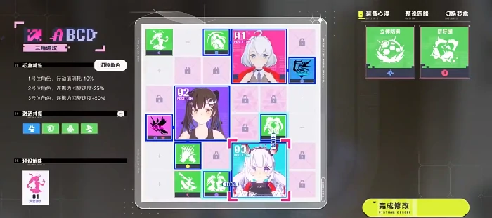 界面右侧的状态栏会同步显示角色之间的实时互动关系,触发的临时增益效果,会在后续对战中明显改变技能释放节奏、伤害倍率或者防御判定窗口,是需要重点关注的战术变量。