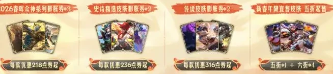 第三重福利是S20赛季排位纪念皮肤提莫春晖系列,庆典期间会开放免费领取通道,玩家只要达到基础活跃度门槛就能一键领取。另外,商城同步上架了多款限时折扣券,覆盖史诗级、传说级、新年主题以及春晖系列的全部皮肤商品,全服买通用皮肤都能用上这些折扣。