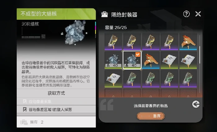 这里要提一下,沉积结核是通用性很高的资源,除了能用来完成委托交付,还能转换成醚质晶块。醚质晶块可以用来累积行动刻度,刻度达到指定数值就能领取阶段性奖励,里面有稀有养成材料和战术支援道具。考虑到它的双重用途和稳定产出的特点,沉积结核应该一直作为采集的核心目标。