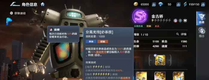 金古桥的核心战斗机制,是将防御格挡与辅助保护深度融合的体系。实战里,它的被动能量盾能提升20%格挡几率,面对高频次攻击时生存稳定性拉满。这种基础坦度与被动效果绑定的设计,再搭配必杀技分离光线可施加两回合麻痹的判定,让金古桥在单挑单体BOSS时拥有极高战术价值,能在承受伤害的同时限制对手行动。