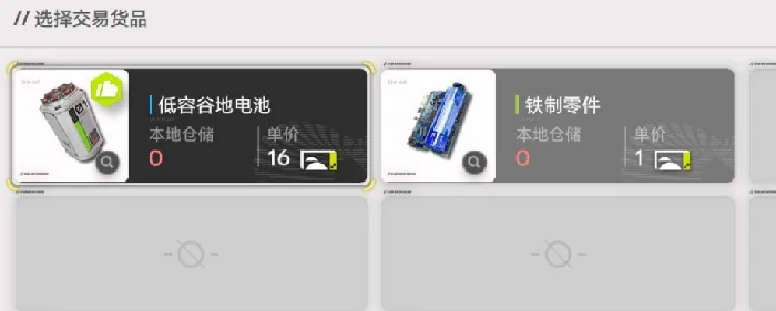 升级基建前站的核心在于交易,但这里可不是随便什么货品都能用来兑换发展值的,基建前站只接收特定品类的物品。在这些可交易的物品当中,低容谷地电池是个高效选择,主要原因是它的单单位发展值贡献较高,用它来交易能更快积累到升级所需的数值。