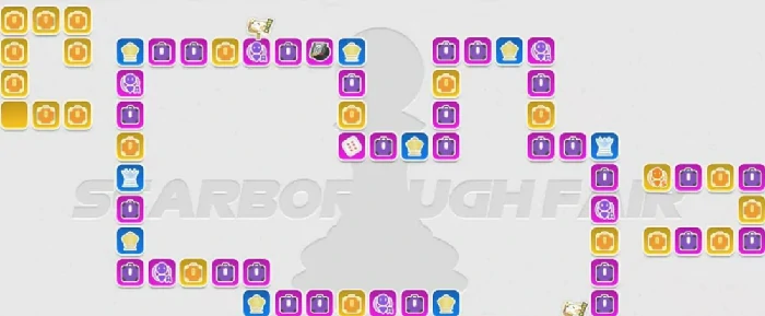 斯卡布罗集市的玩法其实不难理解,玩家消耗对应资源投掷骰子,操控棋子在棋盘上移动。棋盘上分布着不同类型的格子,走到角色格就能直接获取对应角色,走到宝箱格的话,则会随机开出角色或者武器。和传统那种点完十连直接看结果的抽卡方式不一样,这个玩法带着点探索感,每次掷骰子都没法预知会走到哪个格子,有时候运气爆棚,直接踩到心仪的角色格,有时候可能就得绕几步路才能拿到想要的奖励。