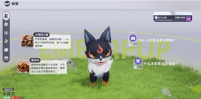 小碳犬在开局区域就能捕捉,别看它外形不起眼,实用性却很高。平时可以用它点篝火、烧掉宝箱上的荆棘,后续还能进化成焚火狼或者狼斗士,最终形态狼斗士在前中期是相当能打的火系战力,蓄力攻击爆发强,清小怪效率超高。
