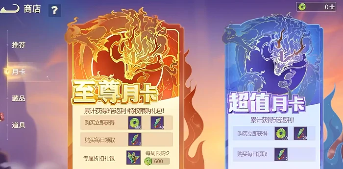 如果想长期稳定获取游戏资源,月卡绝对是性价比首选。目前游戏内有两款月卡可供选择,分别是30元的超值月卡和68元的至尊月卡。购买后立即就能拿到一笔玉璧,之后每天登录还能领取刀币,两款月卡叠加每天可领130和80刀币,长期积累下来资源相当可观。要是把68元通行证、68元至尊月卡和30元超值月卡一起入手,总价166元刚好卡在200元档位内,既能把核心福利全拿下,又不会浪费返利额度。
