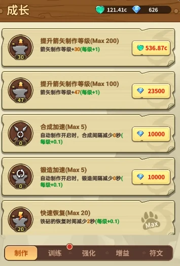后期还可以搭配一个靠谱的防御角色,这套开荒阵容就成型了,足以应对主线的各类挑战。资源利用方面,建议前期每天体力有优惠时一定要买,一般前期每天能买5次折扣体力,避免刷本时体力不足。累积到足够资源后,优先点科技升级,其中“快速恢复”和“铁锭制作上限”这两个词条对新手提升最大。“快速恢复”能加快体力恢复速度,后期解锁的副本越来越多,体力需求也更大,这个词条能让你多刷几次副本,拿到更多资源;“铁锭制作上限”则能提升铁锭的制作量,铁锭是制作装备的核心材料,想要快速成型装备,这个科技得优先点满。