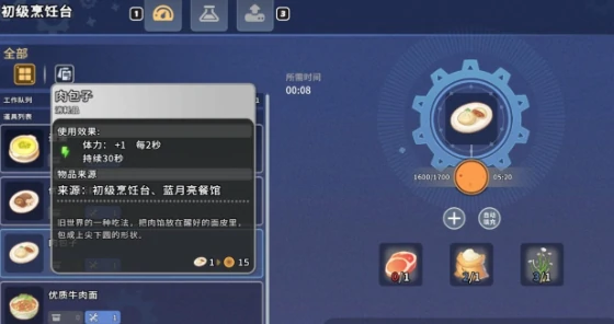 第一个要推荐的方法是借助食物。游戏里的食物效果五花八门,其中部分食物能给我们提供短暂的幸运值加成,帮我们快速提升幸运值。这里特别推荐蘑菇盏,一是它获取制作都很简单,只需要沙漠蘑菇、酱油、肉三种材料,在锅里就能合成;二是它的加成效果不错,能让我们半小时内幸运值提升10点。前中期就能大量制作,用来提升幸运值非常方便。当然也可以选其他食物,因为所有食物都有个隐藏效果——提升幸运值3点,持续30秒,但要注意食物效果不能叠加,这点大家可别忘啦!
