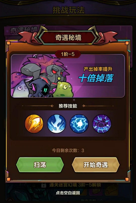 开荒阶段提升角色实力,主要从装备、宝石、技能搭配和天赋搭配这几个方面入手。装备和宝石都能从关卡中获取,等你通关1阶-5关卡后,还能解锁10倍副本,每天可以扫荡三次,能拿到大量养成资源。前期装备更新换代快,不用纠结太多,只要选主属性高的装备就行,不用在意其他属性。宝石也是同理,优先选能提升伤害的来镶嵌。用不上的装备可以分解,分解得到的资源能通过装备锻造来提升角色属性;宝石则可以通过合成,把低品阶的宝石合成高品阶的。