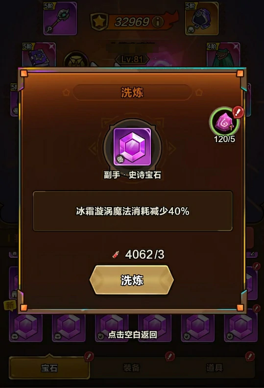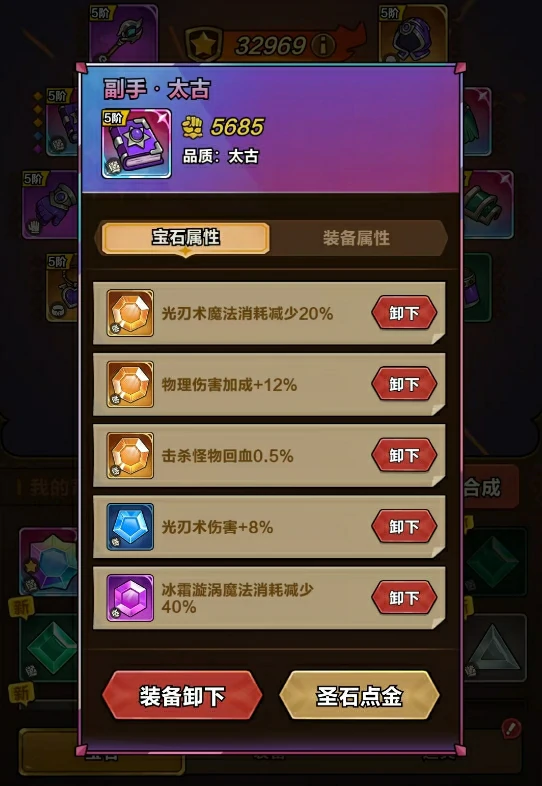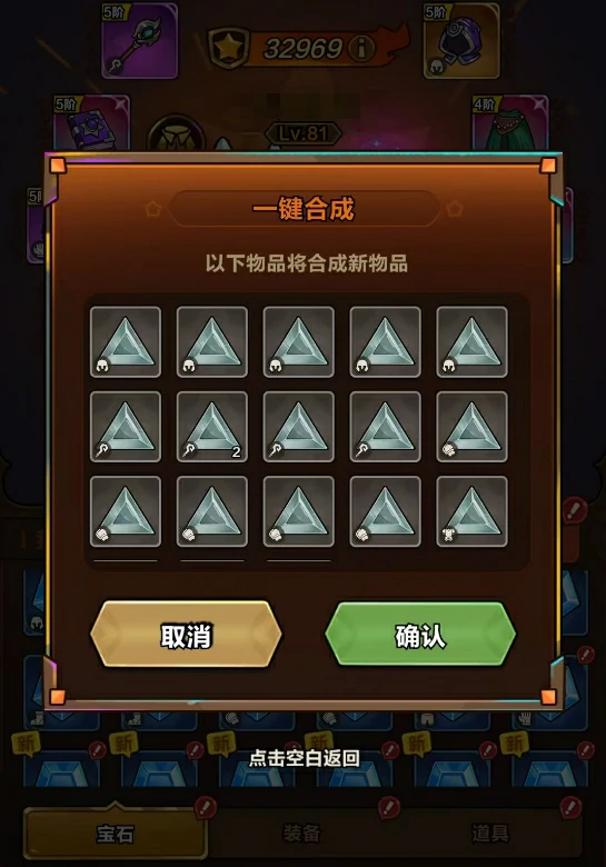 低品质的宝石可以通过合成升级为高品质宝石,游戏还提供了一键合成功能,不用玩家手动逐个选择。如果有想要保留的宝石,不想让它被合成,还可以给宝石上锁,这样合成时就不会被选中。和装备一样,宝石的词条也能通过洗练更换,但需要消耗宝石洗练道具,这类道具可以通过关卡挑战、挂机获取,获取量比较充足。这里要提醒大家,带有稀有标识的宝石,它的属性词条非常罕见,洗练很难出同款,所以这类宝石尽量不要去洗练。