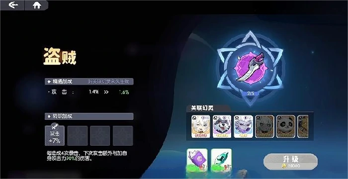 拿刺客职业来说,它的专属幻灵需要搭配“杀手”命途。这个命途能提供基础攻击百分比加成,而且每次击杀敌方单位后,还能额外提升13%的攻击力,效果可以叠加。这个机制让刺客在连续作战的场景里拥有极强的滚雪球能力,是提升单体爆发和清场效率的核心选择。