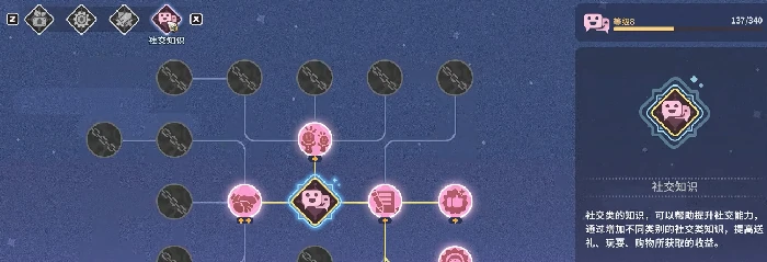 第三个是社交类天赋,作用是加快和小镇居民的好感度积累速度。适当投入点数,就能有效缩短对话冷却时间、提升礼物的反馈质量,还能解锁更多贸易优惠和专属任务。良好的人际关系不光能拿到更划算的买卖差价,还能触发隐藏剧情,包括后续可能开放的恋爱支线内容。