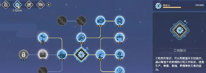第二个是工坊类天赋,主要是提升各类生产设备的运行效率和单次产出量。当玩家的家园慢慢成型后,工坊会成为道具制造的核心区域,产出的工艺品和特色食物不光能用来装饰家园、提升美观度,还能作为高价值商品出售,加快金币的获取速度。所以要重点选那些能缩短制作时间、增加批量产出的天赋,其他非核心的分支可以先不急着点。