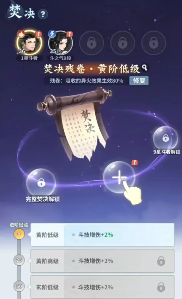 新手玩家完成初始主线任务后,就能解锁第一个火焰资源——紫火。这个资源虽然归为兽火类别,却拥有完整的基础属性加成效果,还会同步激活核心功法焚诀。需要注意的是,焚诀并不是独立技能,而是异火系统的核心枢纽:它通过不断吞噬各类火焰资源来实现进阶,每完成一次吞噬,不仅能提升自身品阶(初始为黄阶低级),还会触发专属战斗特性。比如成功融合骨灵冷火后,角色释放特定技能时就能附加冰冻控制效果。