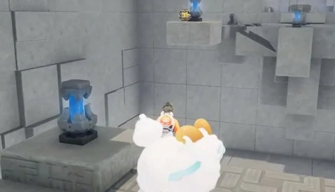 隐藏宝箱主要集中在多个探索场景中,腾云驾雾地宫就是典型代表。这个区域结合了解谜、机关操作和环境交互机制,得按特定步骤触发条件才能解锁宝箱。第一处宝箱在宫主入口附近:玩家要找到一个紫色电箱,把它推到左侧电路断口的位置,通电之后,前面的封闭门会自动打开,宝箱就出现在视野中心了。