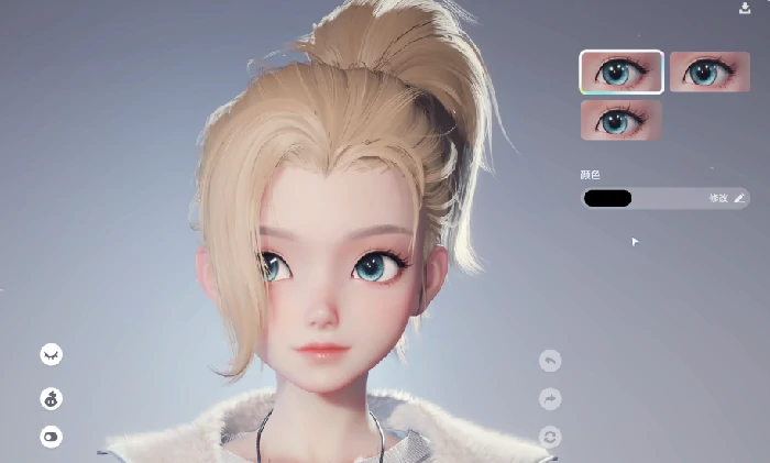 妆容模块采用了非预设的自由编辑逻辑:眼影、腮红、唇色等区域都支持通过输入RGB数值或拖拽HSV色盘来调整颜色,内置的吸色工具可以实时提取图库或自定义参考图中任意像素点的色彩,确保妆容色调的统一性和创意的可控性。发型系统则覆盖了发根蓬松度、发尾弧度、刘海分界线位置、发色明度与饱和度五个调节维度,还支持设置渐变染发效果。