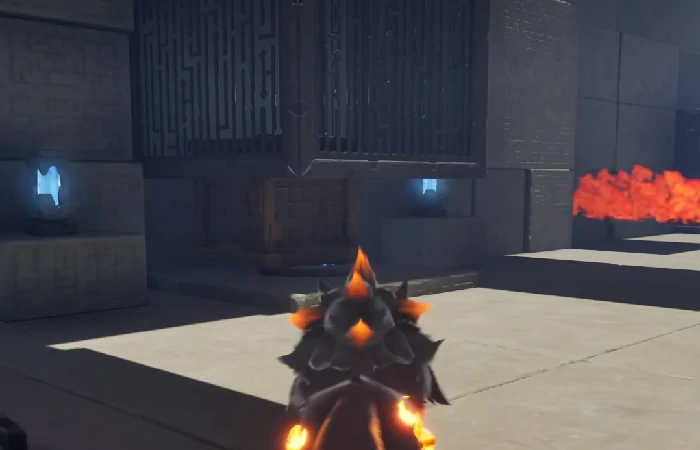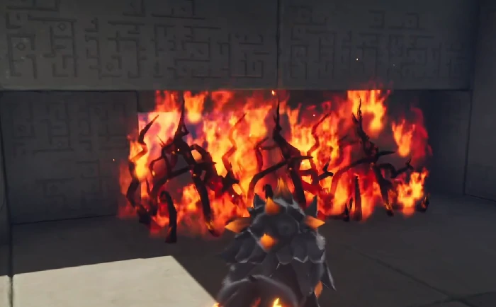 后续关卡里,不少障碍物都得靠火球持续烧才能清掉;有些路被重物堵了,能利用已经破坏或者可以移动的箱体来移位解谜;碰到积水区域时,把箱体放在压力开关上,就能把水排空;最终出口经常被藤蔓挡住,得用火球精准烧掉藤蔓才能过去。完成所有环境互动后,就能到达终点,顺利通关烈火升腾地宫。