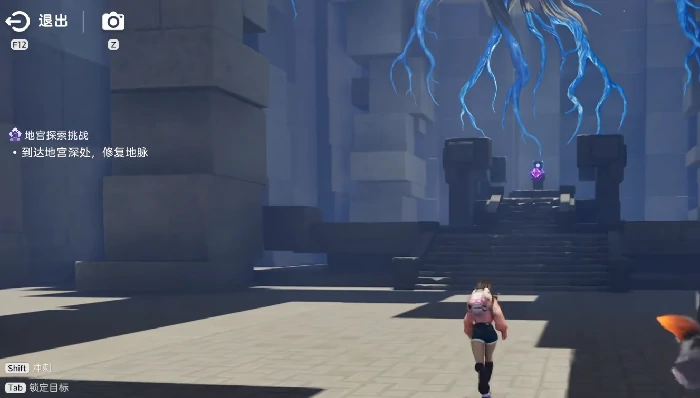 进入地宫后,第一段路全是会周期性喷火的机关,这时候千万别硬扛着冲过去。得捡地上散落的石块,精准扔到对应的喷火口里,就能暂时把火焰挡住。之后赶紧激活快跑状态,加快移动速度,就能安全冲到中央区域。这里有个可交互的伊莫单位,走近后会自动触发联结机制,解锁它的专属能力。