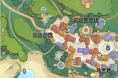 地图最南边是新手出生的起始区域,相当于整个大陆的功能核心地带:这里NPC扎堆,不管是主线任务还是日常任务都能在这接取;商店里能买到各种基础道具补给,各类交互设施也都集中在这儿。紧挨着的月牙湖岸水清见底,常年有一大群水系精灵在这儿活跃,是新手获取第一只水属性精灵伙伴的必去之地。再往北走是一片开阔大平原,视野特别好,天上经常有飞行系精灵掠过,既能高效练级,又能采集素材,非常适合中期过渡提升战力。