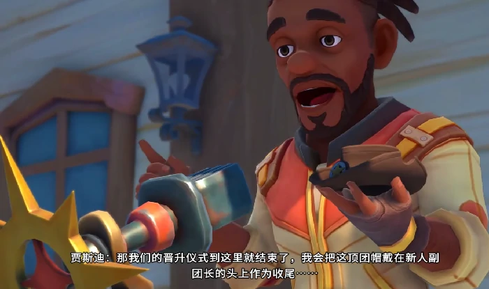 做好团帽后,要主动找NPC贾斯迪提交任务物品。交付的瞬间会触发专属对话,贾斯迪会正式告知你:晋升仪式会在第二天早上九点于镇中心广场举行。这个时间是固定设定,不能更改也没法跳过,大家要合理安排当天的行程,确保准时到场。