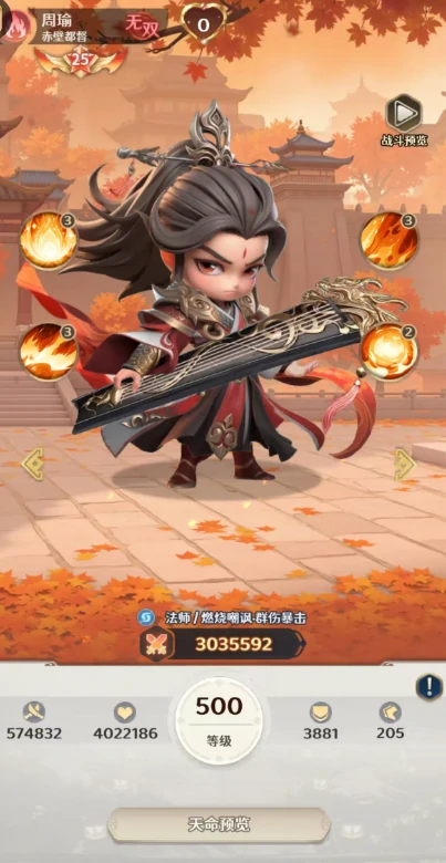 在格斗三国志里,周瑜作为顶尖法师定位武将,目前可培养至红色无双品质。他的核心定位以持续灼烧、战术控制为核心,兼具群体压制能力,是当前版本T0级别的法系输出核心,同时拥有不错的爆发与续航表现。