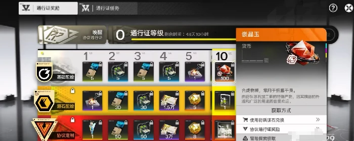 协议通行证能提供长期稳定的收益:售价68元,激活后随等级提升解锁阶梯式奖励。每升1级可固定获得嵌晶玉,满级累计收益明显高于同价位的直充方案。升级速度由任务完成率与活跃度直接决定,普通玩家每日投入30分钟左右,就能维持稳定的升级进度。