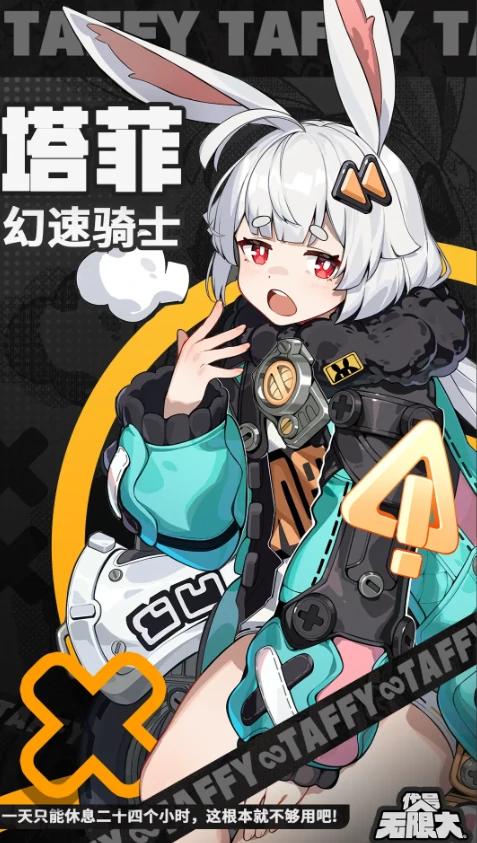 塔菲有着白发、赤瞳与标志性巨型兔耳,面部常带着慵懒神态,整体形象兼具萌系亲和力与高辨识度。她是混厄对策局的新晋调查员,职业发展目标明确指向高阶部门——特异科,这一设定契合游戏世界观中“能力晋升”与“组织层级”的核心成长逻辑。