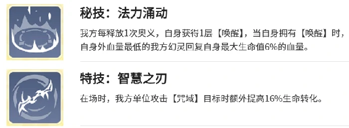 治疗端的联动机制同样实用:被动技能法力涌动会捕捉我方每一次奥义释放动作,每释放一次就叠加一层唤醒buff,为自身与血量最低的队友回复6%最大生命值——战斗越激烈,我方技能释放越频繁,治疗覆盖就越充足。被动智慧之刃更是强化团队续航的关键:只要阿塔妮丝在场,我方单位攻击被他标记的目标时,就能获得16%的生命转化效果,输出的同时完成自我续航,形成良性循环。