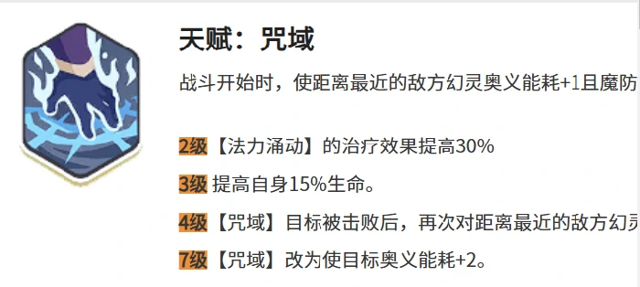 阿塔妮丝的核心机制是从开局就建立压制:战斗启动瞬间就会锁定距离最近的敌方目标,给其施加1点奥义能耗提升debuff,同时削弱目标20%魔法抗性,从源头打乱敌方核心技能的释放节奏,相当于给对方关键角色套上了技能枷锁,让他们有技能难触发。当角色升到7级,这个能耗压制效果会升级到2点,进一步拉开双方技能循环的差距;而4级解锁的进阶效果更具延续性——当被标记的目标被击败后,这个强力debuff会直接转移到下一个敌方单位身上,压制效果全程不中断。