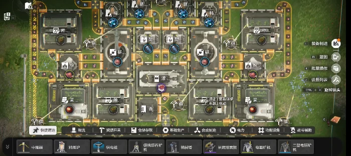 电池的产线搭建相对复杂些,需要按照阶段分层推进。小电池直接使用系统提供的蓝图即可,中型与大型电池的产线则要根据营地科技的解锁进度来安排。等营地升级到银地二级后,仓库功能会正式开放,届时资源的存储与调用会便捷很多,无需玩家手动四处搜集。高级电池官方提供了三套蓝图,如果场地有限,选择简易版蓝图也可行——尽管少了两组原石矿模块,但产能反而能提升约1.5倍。
