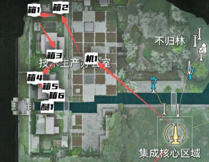 技术办公室内部及周边一共有8个宝箱,这些宝箱基本都藏在建筑的犄角旮旯里,沿着建筑外围多转几圈,留意墙角和屋顶位置就能找到。
