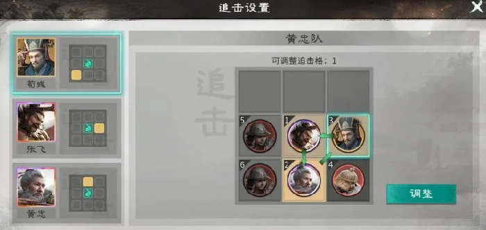 这套阵容的核心框架是黄忠(后排核心输出)+张飞(前排压制)+荀彧(中后排辅助)。它不是那种稳扎稳打的平推型配置,而是以“节奏压制—状态叠加—瞬间秒杀”为运转逻辑。其中张飞负责前排承伤和控场的双重任务,通过施加高额减益效果削弱敌方行动效率;荀彧则持续提供属性增益和战中续航,确保黄忠全程处在高武力、低干扰的理想输出环境里。尤其关键的是站位配合——双穿杨军效果必须和黄忠一起放在后排,而且黄忠要精准踩中荀彧布置的追击格子,以此激活联动增伤的路径,形成稳定的输出闭环。