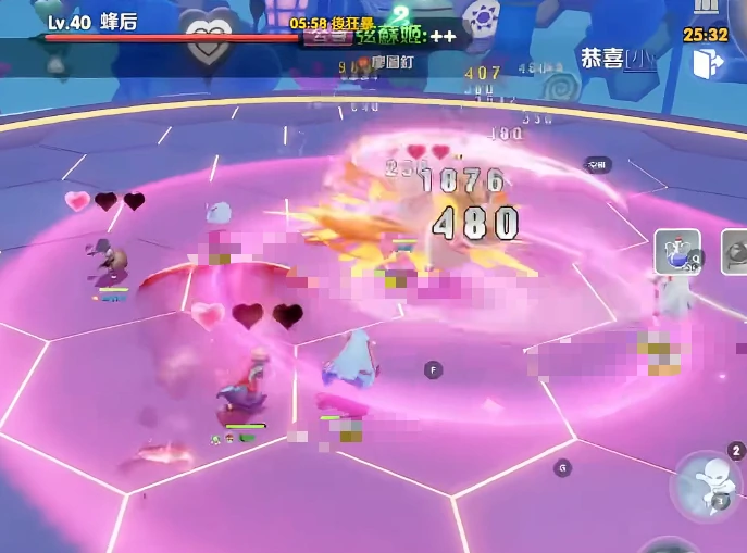 进入第二阶段后,蜂后会释放大范围粉色爱心弹幕,这个技能有强控制效果,被打中就会眩晕,期间不仅没法行动,防御还会失效。这阶段绝对不能输出,所有成员必须立刻停掉技能释放、取消自动普攻,朝着远离弹幕轨迹的横向方向移动闪避。建议提前预判落点,优先选地图边缘或者障碍物后面当临时掩体。
