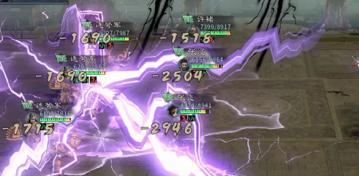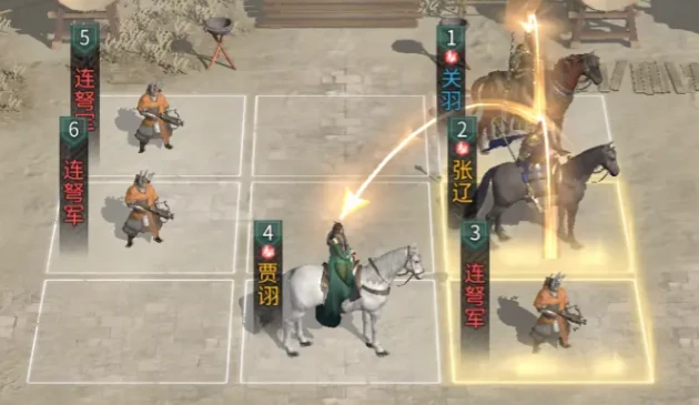 方案二张辽 + 张飞 + 许褚 张辽和许褚都配置巧取豪夺,打好控场基础;张飞则搭配单枪匹马和白虹贯日,强化追击伤害和连动频率。张辽站在前排中央位置,能同时触发张飞、许褚的追击响应,实现多段高频打击,快速压低张角的血线。后排部署三支连弩军,提供稳定的远程AOE输出,加速战斗收尾。