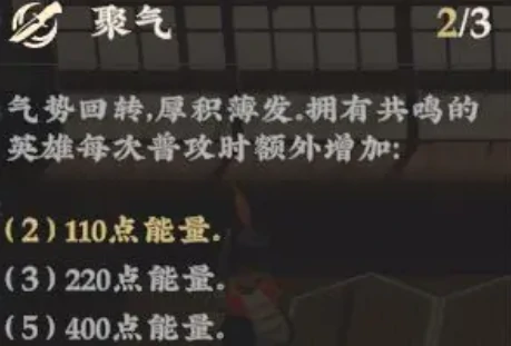 聚气流派专门解决技能能量不足的问题。1级时攻击命中能回100点能量,2级涨到250点,满级后一次能回400点。这是给技能耗能量高的角色量身定做的,不回血,只补能量池,能确保关键技能可以连续释放。