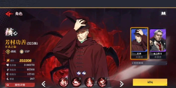 最后要推荐的是芳村功善,他是功能性极强的支援型角色,攻击形态多变,普攻附带40%的吸血效果,强化普攻能对范围内敌人造成150%的伤害;觉醒后,在赫者形态下他的暴击率能提升50%,普攻命中敌人时还有概率让对方眩晕0.5秒,切换成利爪攻击时,更是能打出200%的物理伤害,用好赫者形态是发挥他最大实力的关键,不管是支援队友还是输出都能独当一面。