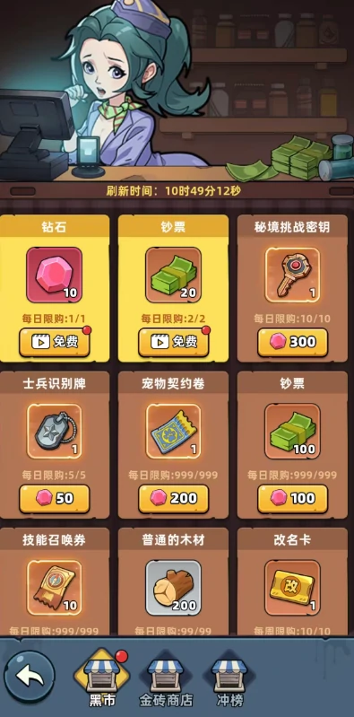 解锁雪山地图后,能在里面获取不少保暖装备;要是到了沼泽地图,记得提前备好解毒药剂。日常挂机就能拿到不少收益,不用特意每天去跑探索任务,跟着主线指引在庇护所周边找破旧货车或宝箱,就能收集到基础养成资源。有经验加速器的话一定要优先用,能快速提升角色等级。黑市每天必买的是机械核心和角色牌,这俩的性价比是最高的。
