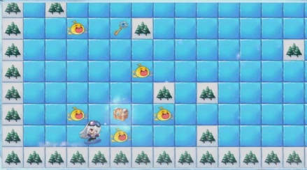 参与雪场活动不仅能获取鲜牛奶和铃铛,还能解锁后续一系列奖励,收益很可观。不过通关时要特别注意冰面的滑行规则——没有遮挡物的话,角色会一直滑行直到撞树才停下,所以一定要提前规划好路线。初始的小型地形很适合新手,按照右下左上的顺序移动,既能捡完所有奶瓶,又能精准停在终点,新手基本能一次通关。后续地形会逐渐变大,且呈网格状,记住“先右后左,由外及中”的原则:先把右侧的奶瓶全部收集完毕,开完宝箱再转战左侧,别急着直接冲向终点。