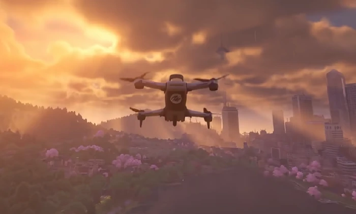 最后一个实用功能是用来俯瞰记录游戏里的绝美风景。进入游戏后你会发现,不管是城市里的摩天楼宇,还是野外的花园草甸,建模都做得十分精致。想要全方位领略这些美景,高空俯瞰是最佳方式,但游戏内角色无法悬空,这时操控无人机就能轻松实现高空视角,把所有美景都收入眼底,还能随时记录下来。