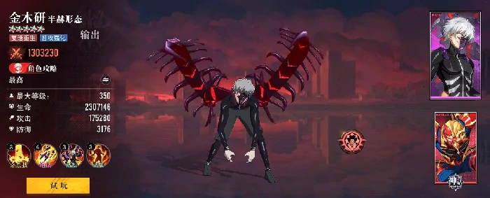 首推角色是金木研。他定位为高机动性爆发核心输出,前期就能快速获取并形成有效战力。技能自带多段位移与形态切换机制,进入二阶形态后可释放穿透型范围伤害,对敌方前排与后排都能构成显著威胁。尤其关键的是,每次触发穿透伤害时会按比例恢复自身生命值,大幅强化持续作战能力,不管是开荒期推图还是中后期高难副本,都具备不可替代的战术价值。