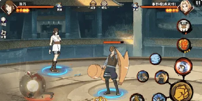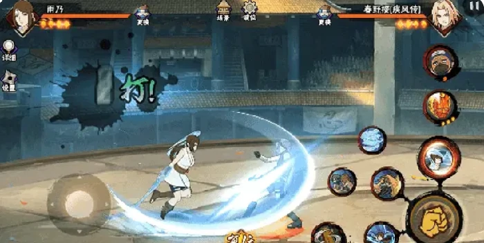 奥义技砂阵连击尽显砂隐村的特色战术配合:发动后会瞬间同时召唤志志雄和光司入场,志志雄会施加隐身效果,让雨乃和光司进入不可被敌人察觉的状态;紧接着三人一同向前突进,对敌方目标发起多段连续攻击;在终结阶段,雨乃会率先解除隐身,用水螳螂形态完成强力斩击,打出高爆发的收尾伤害。