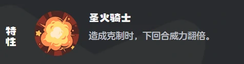 它的技能组既顾得上节奏铺垫,又能持续给对手施压。火苗(威力30,使用后获得1点能量)是非常合适的起手技能,能快速攒够能量来衔接后面的高伤害技能;猛烈撞击(威力60)则是稳定的单段物理输出选项;缠丝劲和双响炮都是两段连击技能,配上圣火骑士的增益效果,能实现多段倍率叠加,让总伤害的期望大幅提升。