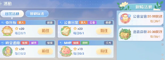 进入游戏中后期后,重点玩法慢慢展开。远古踪迹副本每天21:00准时开放,掉落的资源对角色养成来说是不可替代的,属于必须刷的内容。另外,委托榜作为高频日常任务的入口,支持灵活接取并完成各类目标,是稳定积累金币、强化石和卡片的重要渠道。整体来看,游戏的核心活动大多集中在晚间时段,合理规划每天上线的时间,能让资源收益最大化。