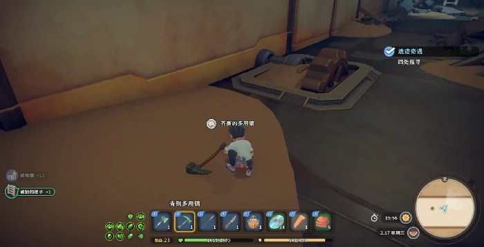 关键道具齐衡的多用稿就放在齐衡的身旁,拾取并装备这把镐子后,才能对沿途所有废料进行采集;使用玩家自带的普通镐具无法破坏或收集这些特定的遗迹材料,一定要注意切换工具。