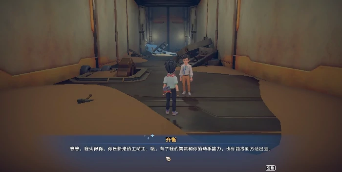 进入遗迹后,主角会自动坠落至内部通道。沿着路径一路前行,就能遇到NPC齐衡。和他对话是本任务无法跳过的强制步骤——如果没触发对话就离开,任务将无法激活,后续流程也会因此中断。通过对话我们能了解到,齐衡正在寻找某件核心装置,却意外被困在了遗迹深处,这时系统会自动发布协助齐衡撤离的任务目标。