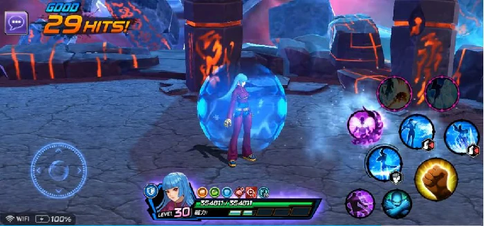 库拉的整套战斗逻辑围绕冰魄能量运转,这也是她所有技能效果的核心依托。释放主动技能时,冰魄能大幅提升她的伤害档次;在指定区域施放群体攻击后,只要冰魄能量达标,就能直接开启冰之领域——高速旋转的冰晶会覆盖大范围战场,对全体敌人展开持续打击。领域结束后还会自动触发寒气漩涡,不仅能延续范围伤害,还能提供实用的软控效果,进一步放大冰系阵容的整体压制力。