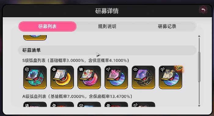 再聊聊大家最关心的抽取概率:S级弧盘的出货率为3%,A级弧盘为8%。虽说限时活动已经拉高了S级弧盘的概率,但3%其实不算高,运气差的话可能要抽很多次才能出一个S级。不过不用担心,活动设有保底机制,抽够指定次数就必然能拿到S级弧盘,即便脸黑也不会血本无归。