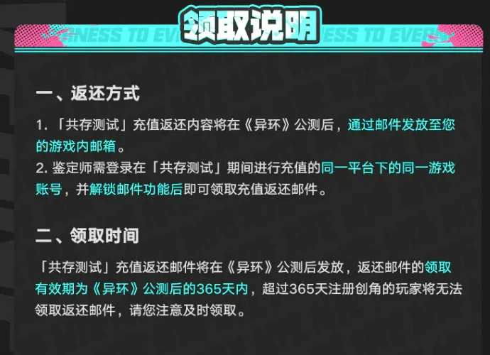 最近异环开启了共存测试,不少玩家都在操心测试期间充值会不会打了水漂。其实官方早就放出了详细的返还规则,而且返还力度相当可观。今天就给大家梳理一下这次测试的充值返还机制,尤其是通行证相关的规则。虽说测试是删档性质,但所有充值的部分都会按规则返还到公测账号里,不仅不会亏,公测后还能拿到更多福利。