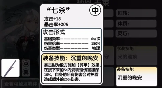 光的遗痕技能进一步强化了她的护盾循环能力,每一次普通攻击都会生成持续5秒的护盾。这个护盾数值不算高,仅为最大生命值的3%,但能优先承受伤害。凭借高频普通攻击,柚恩可以实现护盾的无缝衔接,让战斗节奏更为流畅。装备技能方面可以选择沉重的晚安,暴击时能触发碎甲效果,使敌方在5秒内承受的物理伤害提升10%,同时对敌方护盾还能额外造成约30%的伤害,因此面对护盾型敌人时,她拥有天然的压制力。