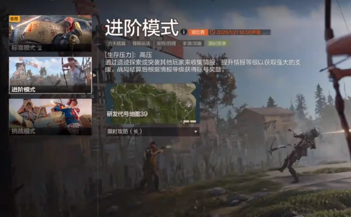 营地搭建完成后,还得逐步加固墙体、部署炮台等防御工事。从第6天开始,玩家可以组织小队主动发起突袭,也能独自参与对战。不管是独自应战还是和好友组队,都能灵活开展战斗——组队作战能实现战场资源的最优分配,玩家可根据自身需求选择单人挑战或是结伴同行。除了标准模式,资深玩家可以尝试进阶模式,这个模式难度更高:不仅物资掉落量会减少,遭遇的对手战力也会大幅提升,对玩家的生存技巧与策略规划提出了更高要求。
