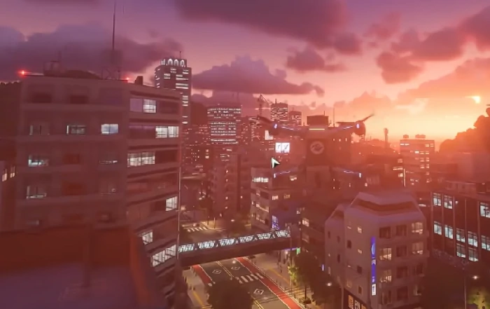 首先,异视投影支持高空视角自由巡航,能完美补上角色地面移动时的视野短板。游戏里的场景建模包含超写实的都市群落、生态化的自然地貌还有多层立体街区结构,常规步行视角很难完整展现出空间层次。开启异视投影后,玩家可以操控虚拟无人机升到城市制高点,用俯角动态观察建筑肌理、光影变化和环境细节,而且它还有实时障碍规避的能力,能实现无遮挡的全景浏览。